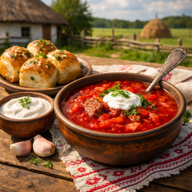 - 팜푸슈카와 마늘: 보르쉬의 영혼 단짝인 팜푸슈카는 갓 구운 빵 위에 마늘 오일을 듬뿍 바른 것입니다. 알싸한 마늘 향과 따뜻한 수프의 만남은 전 세계 어떤 미식 경험과 비교해도 뒤지지 않습니다.