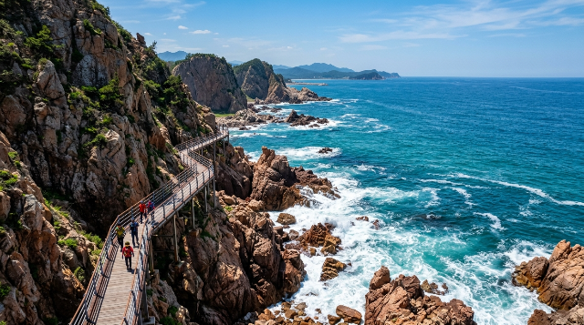 - 경이로운 포인트: 꽃 모양처럼 펼쳐진 부채꼴 주상절리와 전망대에서 내려다보는 끝없는 수평선. 이름 그대로 걷는 내내 파도 소리가 귓가를 맴도는 힐링 코스입니다.