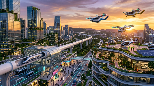 2026년 현재, 인류의 이동 수단은 지면을 벗어나 하늘과 진공 터널로 확장되고 있습니다. **하이퍼루프(Hyperloop)**는 진공에 가까운 튜브 속을 자기 부상 열차가 시속 1,200km로 달리는 초고속 이동 수단으로, 서울에서 부산을 20분 내에 주파합니다. **UAM(도심 항공 모빌리티)**은 일명 '에어택시'로 불리는 수직이착륙 비행체로, 도심의 극심한 교통 체증을 피해 하늘길로 이동하는 혁신적인 교통망입니다.