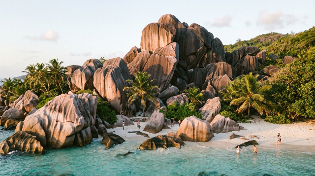 - 앙스 수스 다종(Anse Source d'Argent): 라디그 섬에 위치한 이 해변은 전 세계에서 가장 사진이 많이 찍히는 해변으로 유명합니다. 거대한 화강암 바위들이 해변 곳곳에 흩어져 있어 신비로운 분위기를 자아내며, 영화 '캐스트 어웨이'의 배경 같은 태초의 풍경을 보여줍니다.
